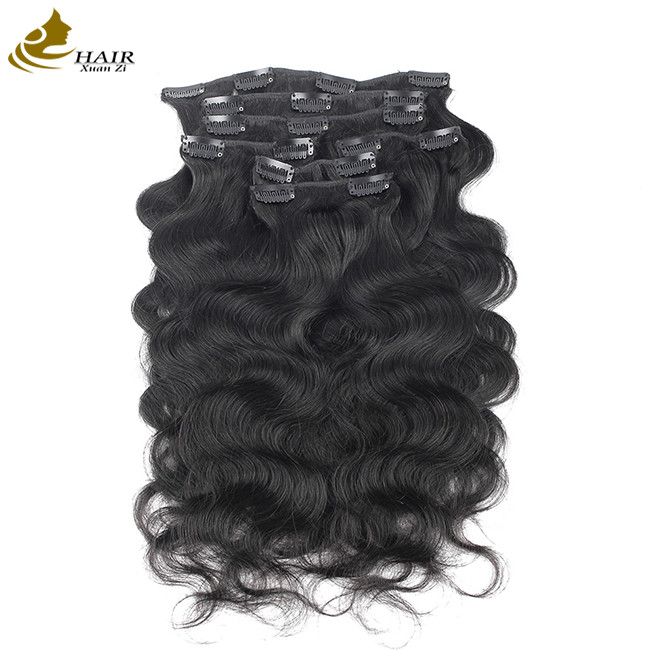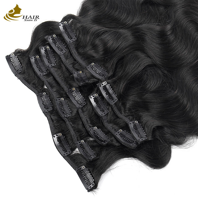 | 製品名 | 天然黒ブラジリアンレミ 人髪 身体 波のクリップ イン ヘア エクステンション |