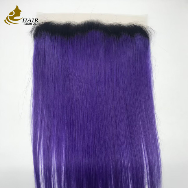 T1b/紫色 処女 ヒト ストレートヘア 13*6 蕾のフロント閉塞